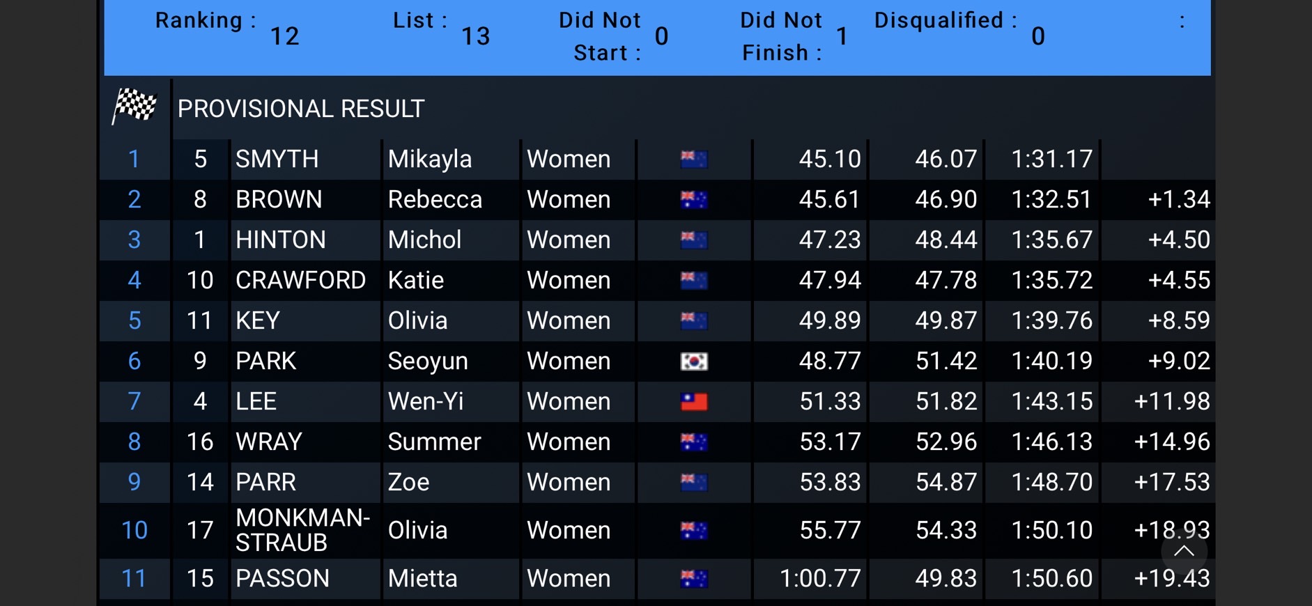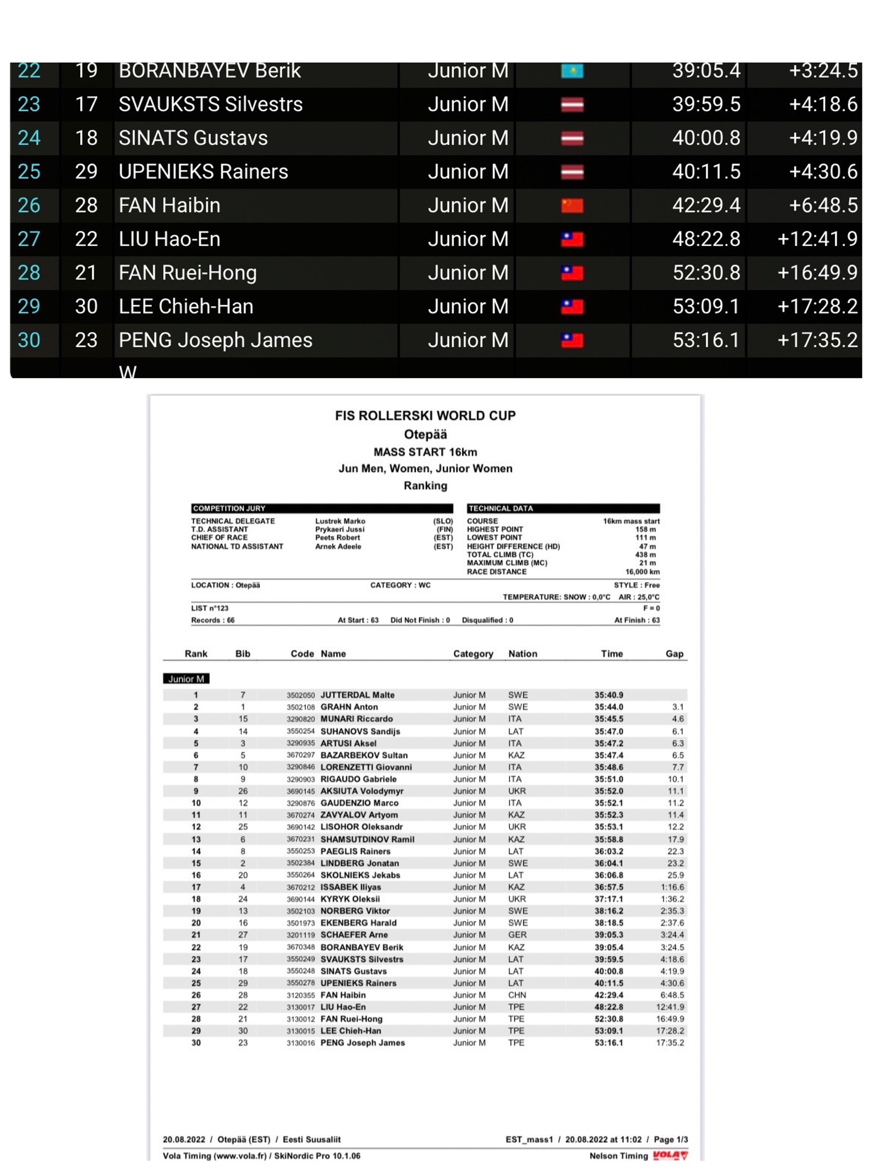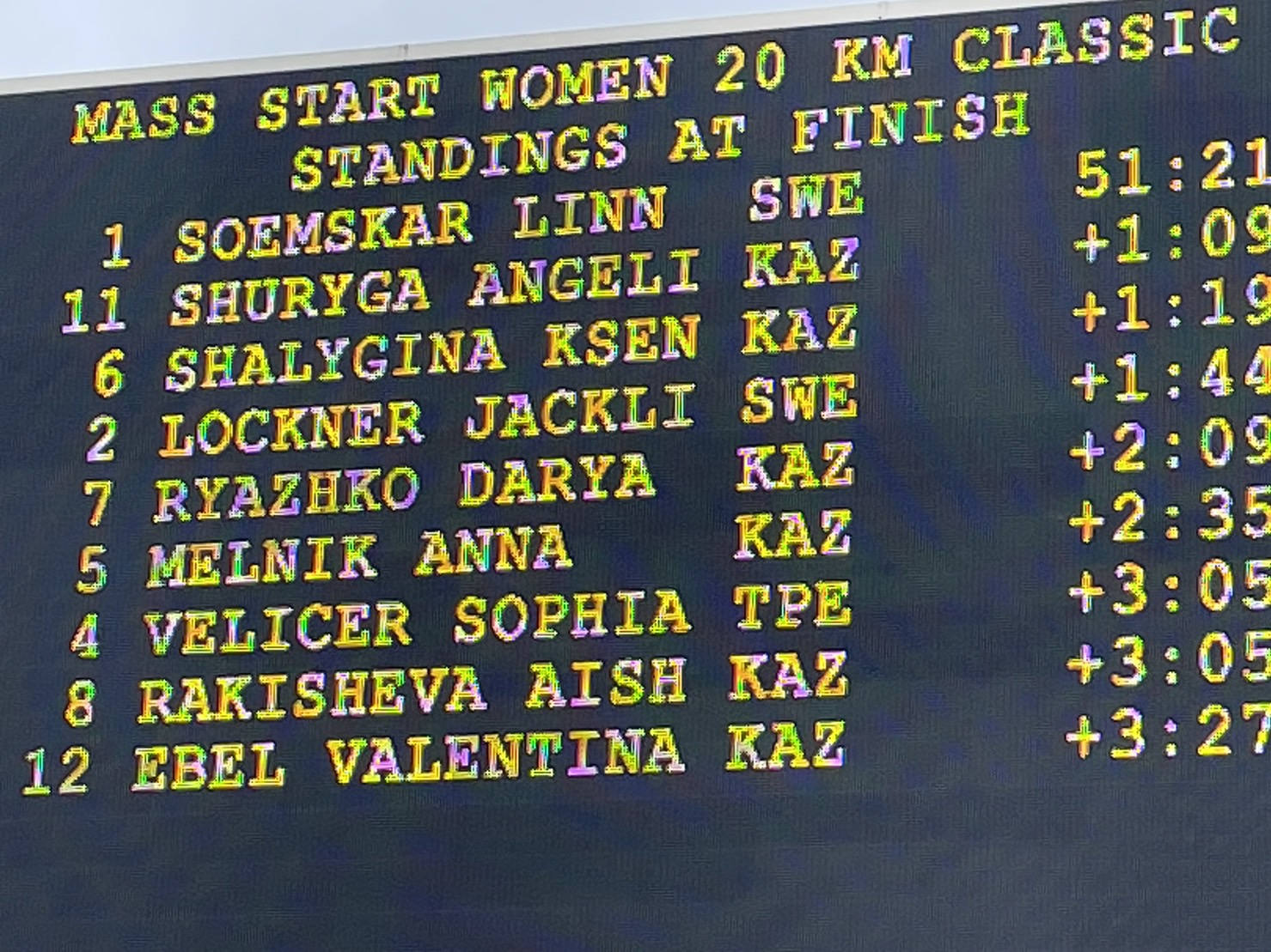 2025年第9屆哈爾濱亞洲冬季運動會越野滑雪10Km Free TPE選手成績表