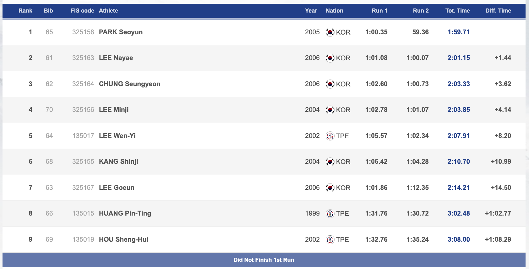 Alpine選手在韓國國家錦標賽擔任前走