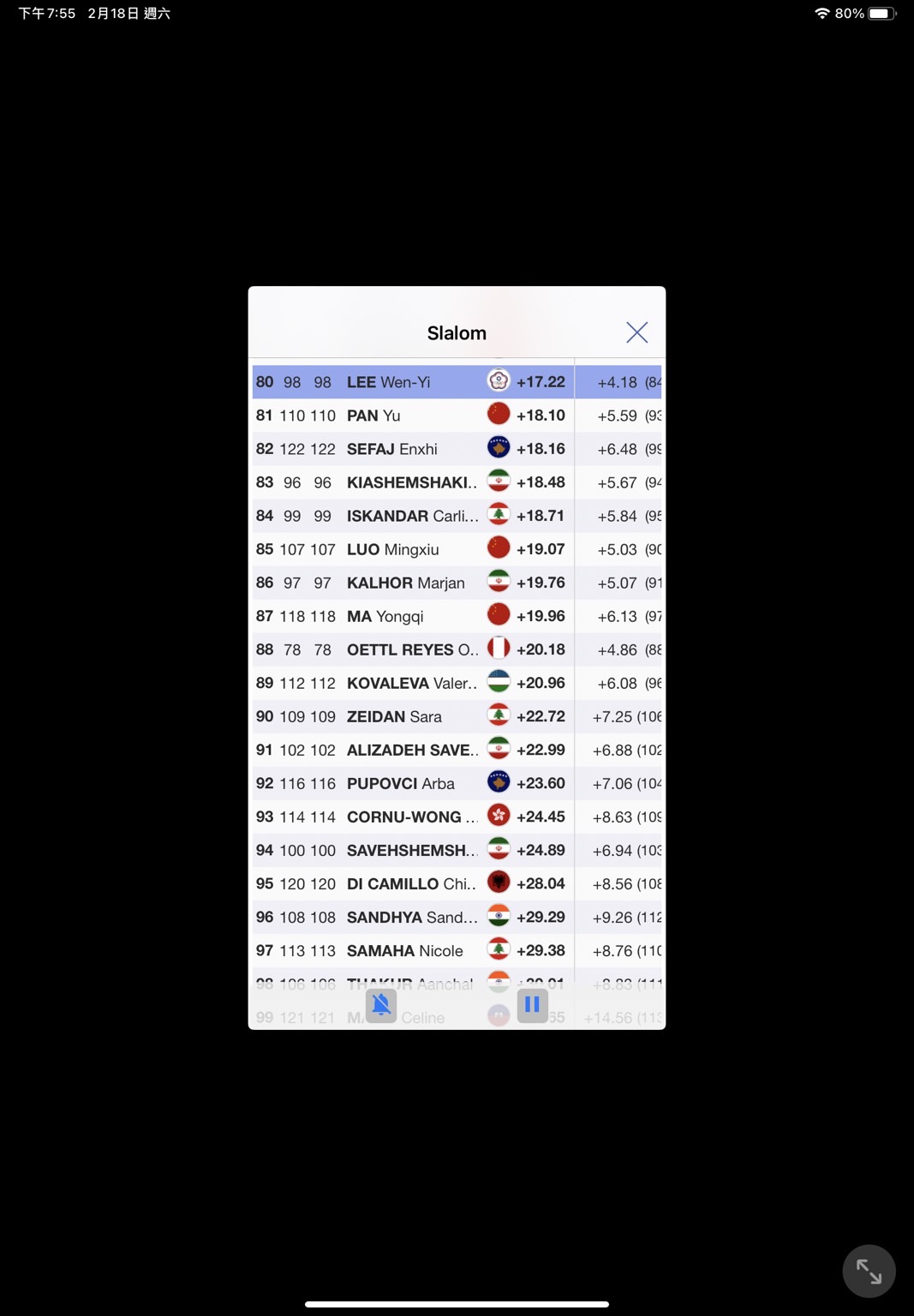 滑雪選手李玟儀2022年第24屆北京冬季奧林匹克運動會比賽影片(來源:中國央視視頻)
